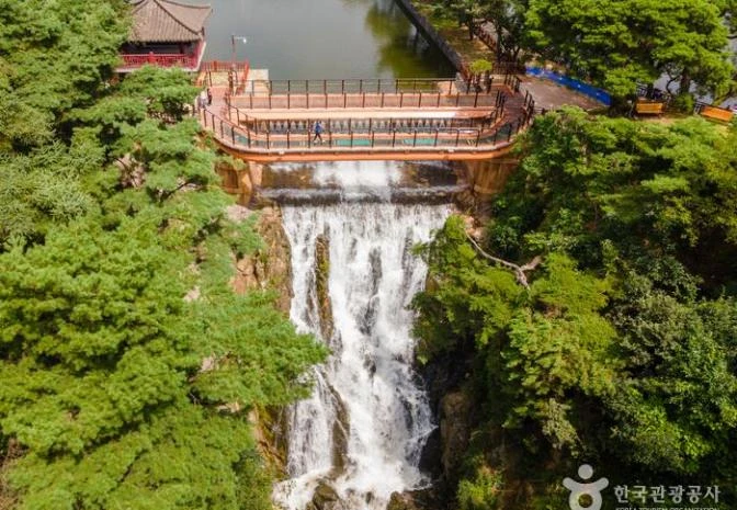 용추폭포는 높이 5m 정도의 작은 폭포이지만 수량은 많은 편이다. 여기에 흐르는 물의 맑기가 구슬같이 흰 바위들과 어울려 뭍이 흐른다기 보다는 바위가 흐른다는 느낌을 준다. 이 기암괴석을 이름하여 와룡추라 하듯이 흡사 하늘에서 내려 온 용이 누워 있는 형상이다. 자료출처 : 대한민국 구석구석(http://korean.visitkorea.or.kr) 가평 남이섬 그랑나랑 스파&풀빌라에서 약 12.1km, 차량 약 28분 거리